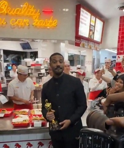 Michael B. Jordan leva Oscar de melhor ator e vai a fast food após premiação