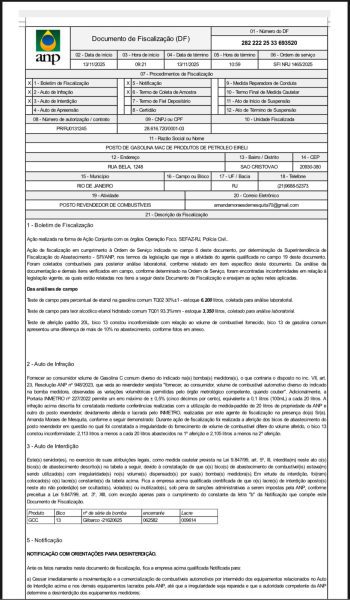 Uma fiscalização da Agência Nacional do Petróleo, Gás Natural e Biocombustíveis (ANP), realizada em 13 de novembro, identificou irregularidades graves no Posto de Gasolina MAC de Produtos de Petróleo Ltda, localizado na Rua Bela, nº 1.248, em São Cristóvão, na Zona Norte do Rio de Janeiro. A ação fez parte de uma operação conjunta com a Operação Foco, Secretaria de Estado de Fazenda (Sefaz-RJ) e Polícia Civil, determinada pela Superintendência de Fiscalização do Abastecimento da ANP.