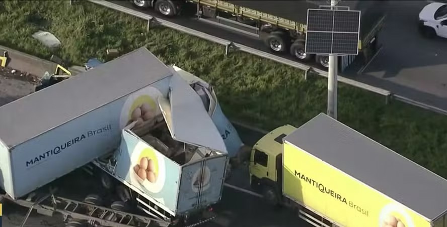 Engavetamento com cinco veículos trava a via Dutra e deixa ferido em estado grave
