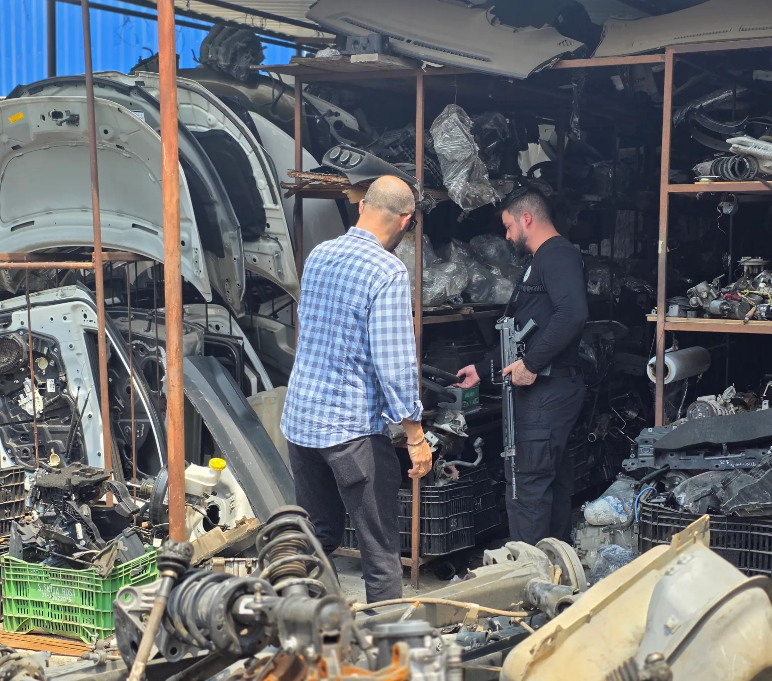 Uma fiscalização da CPI das Câmeras da Alerj, com apoio da Delegacia de Roubos e Furtos de Automóveis (DRFA), identificou nesta sexta-feira (14/11) um galpão suspeito de funcionar como desmanche em Nova Iguaçu. No local, os deputados encontraram latarias, peças de motor e outros componentes automotivos sem nota fiscal. Um homem com a chave do espaço foi conduzido à delegacia.
