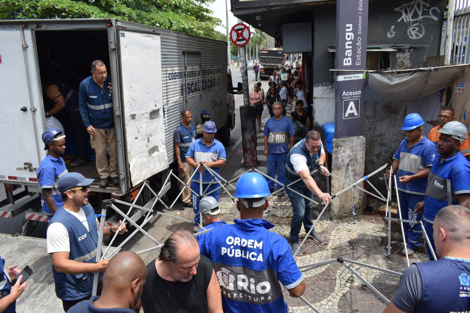Durante a fiscalização, foram retiradas três toneladas de caixotes e estruturas em mau estado, além da apreensão de centenas de bebidas, mesas, cadeiras plásticas, carrinhos, churrasqueiras e botijões de gás. Um homem foi conduzido à 34ª DP (Bangu) por estar comercializando armas de brinquedo.