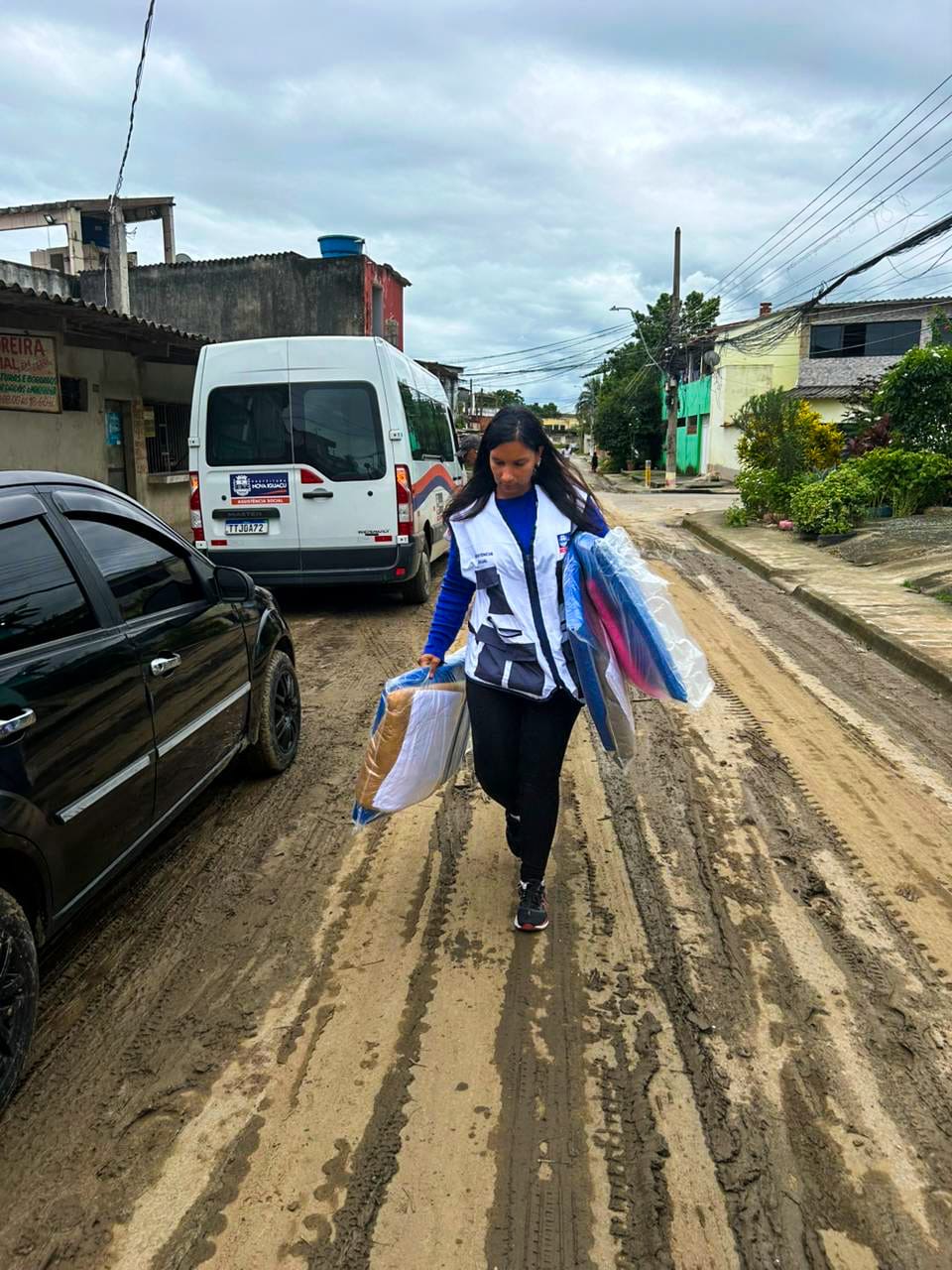 Equipes da Secretaria Municipal de Assistência Social estiveram em Prados Verdes e outros bairros da região, realizando cadastramento, avaliação das perdas e entrega de insumos emergenciais, como colchões, cobertores, cestas básicas e kits de higiene e limpeza.