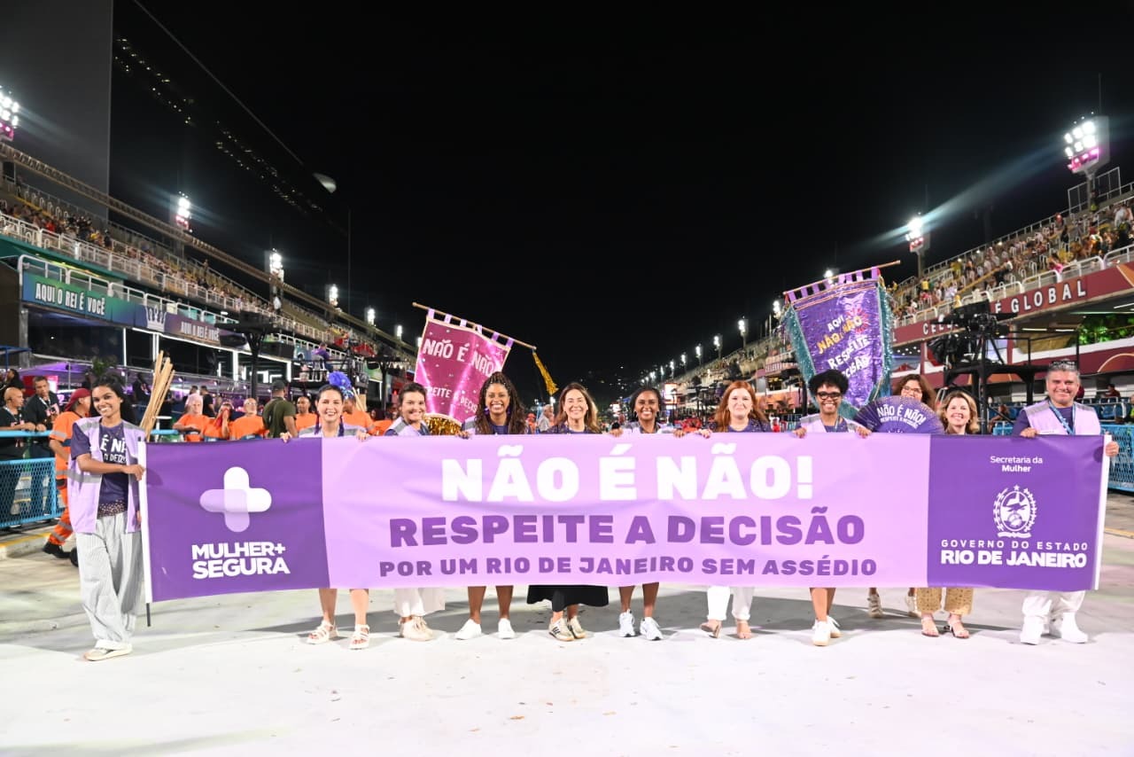 A Secretaria de Estado da Mulher também levou para a Avenida a campanha “Não é Não! Respeite a decisão”, antes dos desfiles das escolas da Série Ouro, e dará seguimento à ação nos próximos dias. A iniciativa reforça a importância do respeito e divulga os canais de apoio disponíveis, como o telefone 190, da Polícia Militar, e o aplicativo Rede Mulher, que oferece suporte e orientação às vítimas. Durante os cinco dias de desfiles na Sapucaí, as equipes distribuem milhares de materiais informativos ao público, incluindo 50 mil versões em inglês e espanhol.