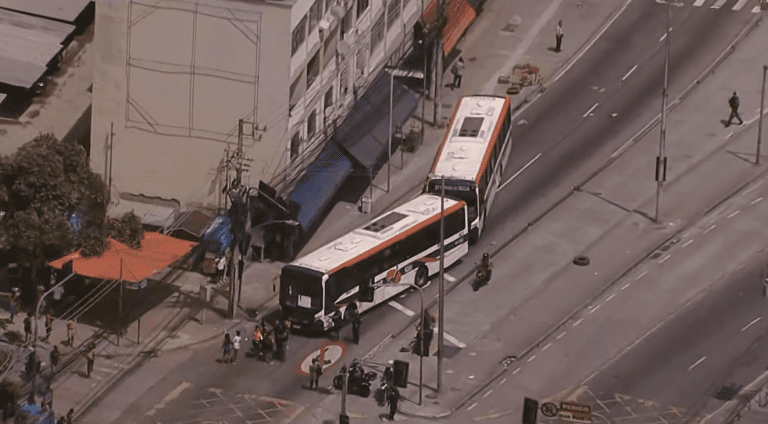 Ônibus são atravessados na via e bloqueiam Rua Cândido Benício, na Praça Seca Jornalismo 16 de março de 2026