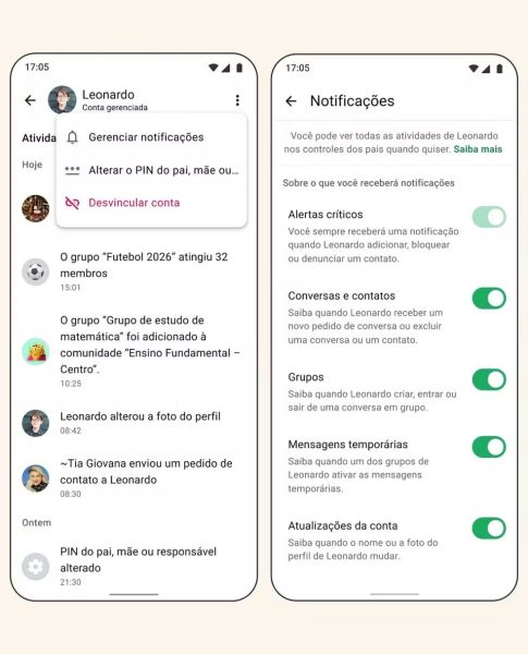 O WhatsApp começou a permitir que pais ou responsáveis monitorem mensagens e coloquem limites sobre a atividade de menores de 13 anos no aplicativo. O recurso foi anunciado nesta quarta-feira (11) e começará a ser testado com um pequeno grupo de usuários nas próximas semanas.